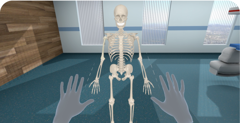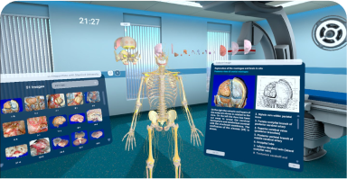 The 3D VR DICOM viewer allows users to view CT and MRI scans in the virtual environment of the Human Anatomy VR application. By converting 2D DICOM images into a detailed interactive 3D model, it offers an immersive way to explore anatomical structures in virtual or mixed reality.